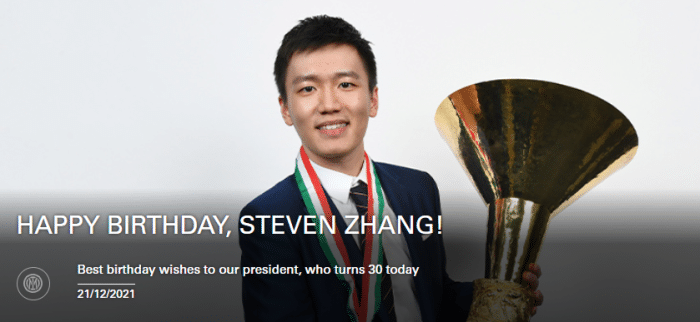 谨代表俱乐部的每个人和国米大家庭,我们祝福主席先生健康快乐。国米加油!