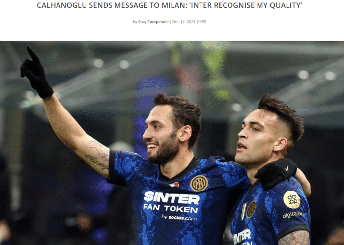 恰尔汗奥卢说道:“我很高兴能够为国米效力,这让我无比自豪,我要感谢球队对我的信任和认可,以及球迷一直以来对我的支持,这让我为俱乐部拼拼尽全力。”