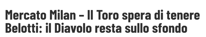 《都体》表示,贝洛蒂希望离队迎接新的挑战,他和米兰似乎已经达成口头协议,尽管都灵方面为他开出了350万欧元年薪的新合同。