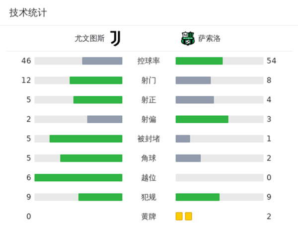 最终全场比赛结束,尤文3-0萨索洛。