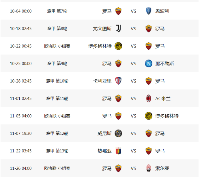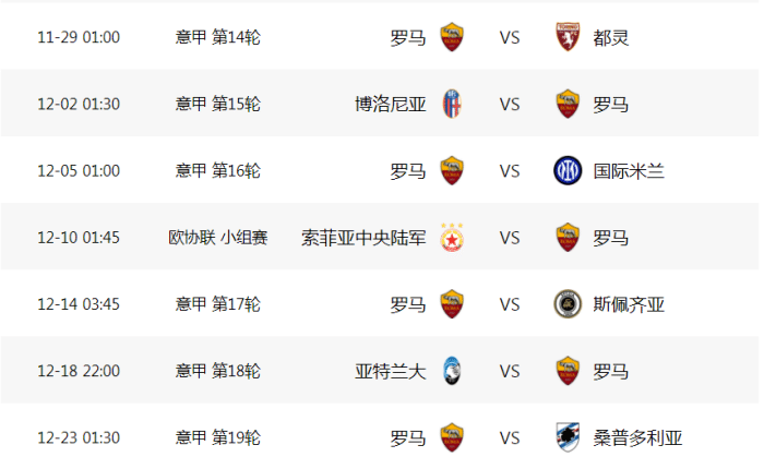 如图,罗马本赛季的比赛,基本上都是在凌晨0点之后,只有意甲第12轮罗马客场对阵威尼斯的比赛,是安排在北京时间19点30分,还有就是意甲第18轮罗马客场对阵亚特兰大的比赛安排在北京时间晚上10点。其他比赛,最早的就是凌晨0点,最晚的就是凌晨3点45分。不得不说,这样的赛程安排,似乎不大友好啊!让小编有点怀念当初晚上就能够看意甲的时代了。