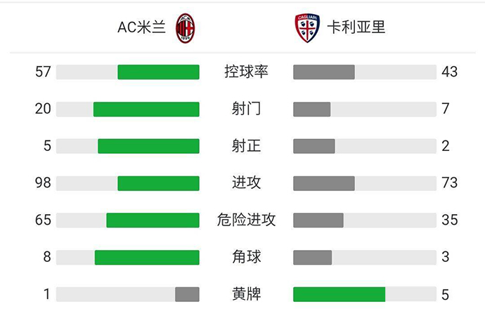 第42分钟,吉鲁主罚点球命中,AC米兰4-1卡利亚里。