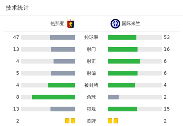 24直播网讯:北京时间12月30日凌晨03:45,意甲联赛第18轮,国际米兰做客路易吉-费拉里斯球场,挑战热那亚,本场比赛主裁判为多维里。上半场,阿瑙托维奇补射打破僵局,德拉古辛头球扳平比分。下半场,阿瑙托维奇爆射制造威胁,阿切尔比头球造险。最终,热那亚1-1国际米兰。