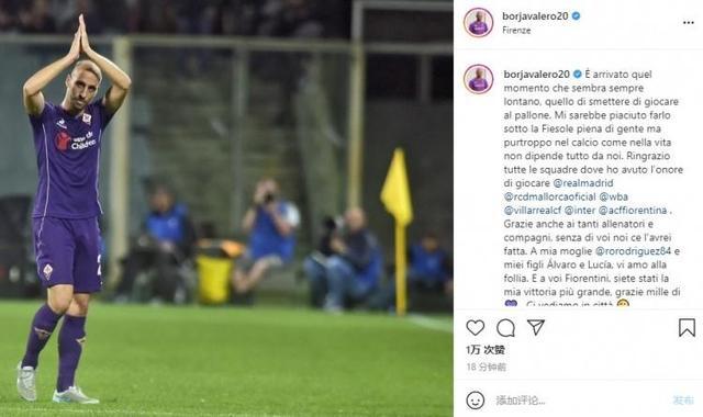 24直播网讯 官方消息,36岁的西班牙中场博尔哈-巴莱罗宣布退役。