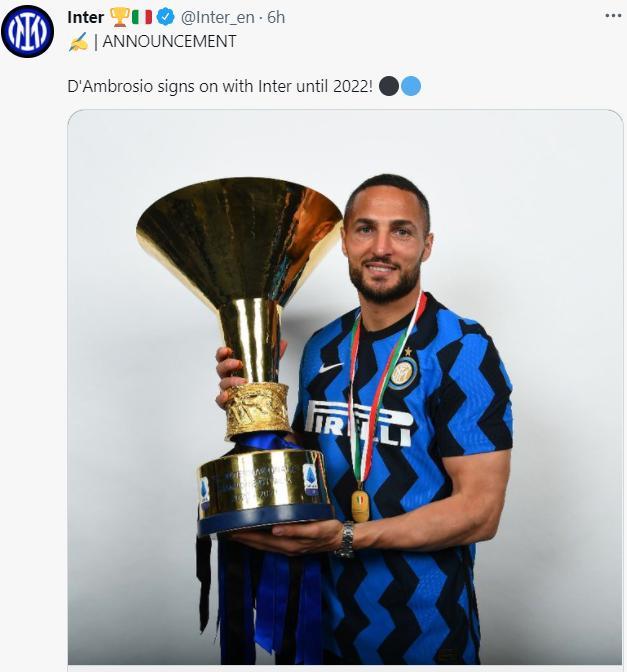 24直播网讯 今天凌晨,国际米兰官宣两笔续约,拉诺基亚和丹布罗西奥均续约至2022年。
