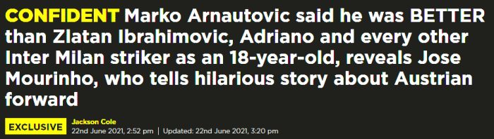 24直播网讯 穆里尼奥最近接受了talkSPORT电台采访,他表示阿瑙托维奇一直是一个非常有自信的小伙子,在18岁时就曾表示自己比伊布和阿德里亚诺等人都强。