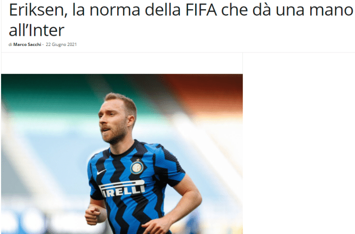 埃里克森在欧洲杯中突然昏迷,目前仍未知道他能否继续踢球,因此按照国际足联的俱乐部保护计划,国际足联将承担他在国米的部分薪水。