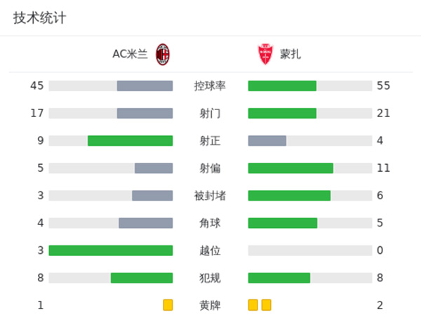 全场比赛结束,最终AC米兰3-0蒙扎。