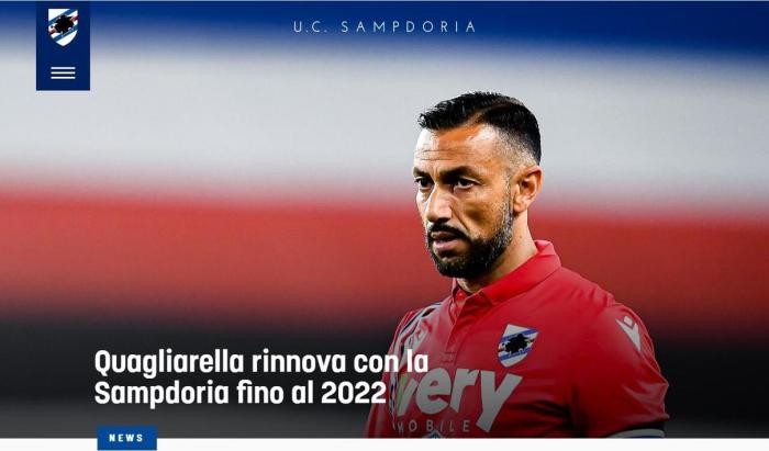 今日,桑普多利亚俱乐部官方宣布,同38岁的队长法比奥-夸利亚雷拉续约至2022年。
