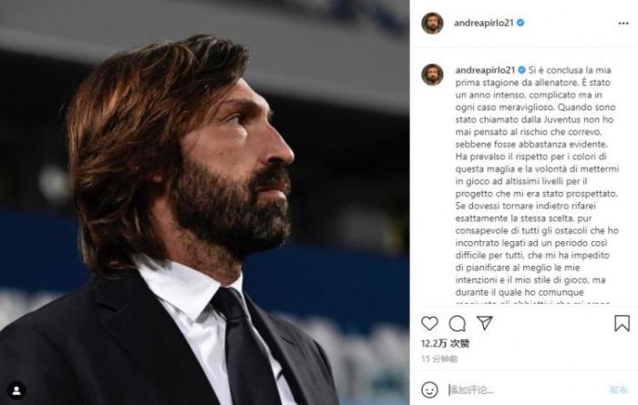 24直播网讯 刚刚,尤文官方宣布皮尔洛下课的消息,而皮尔洛在社交媒体中发布长文,向尤文图斯进行了告别。