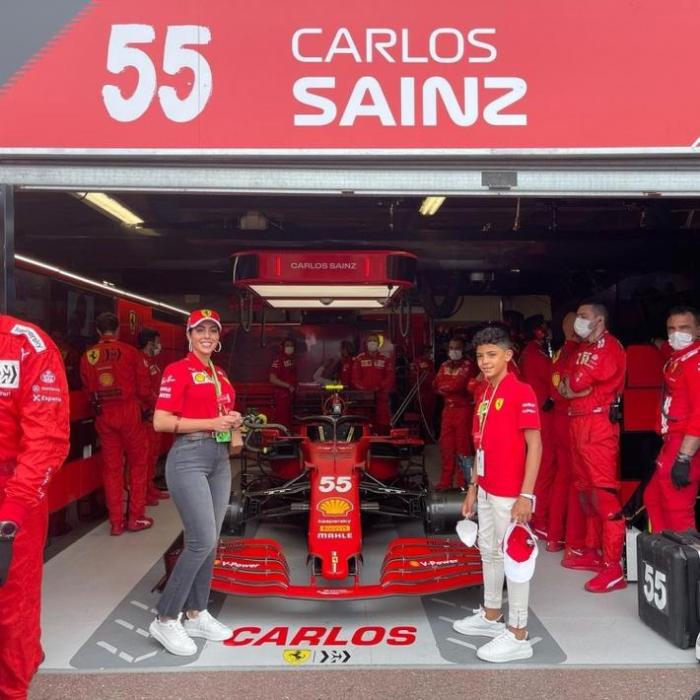 乔治娜晒出了两人身穿法拉利车队的球服的照片,并且配文道:“祝法拉利车队好运!”