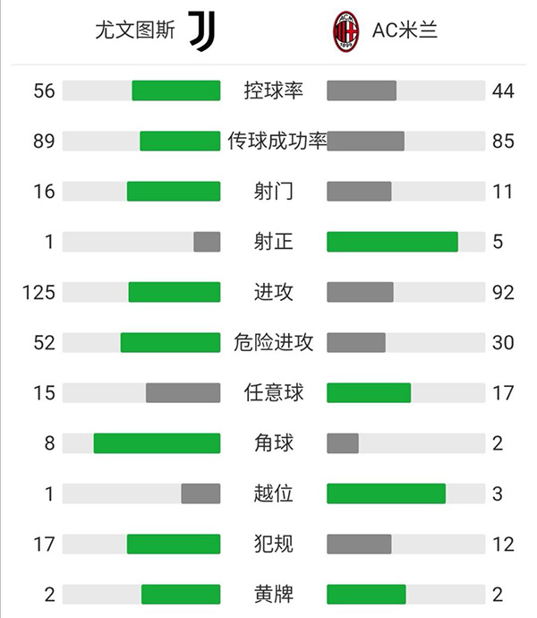 全场比赛结束,尤文图斯0-3不敌AC米兰。