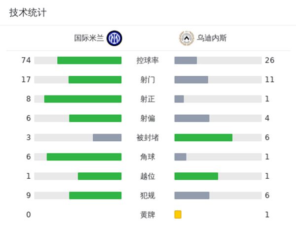 第84分钟,国米扩大比分!劳塔罗中场反抢帕耶罗后拿球突破到弧顶一脚远射破门,国米4-0乌迪内斯。