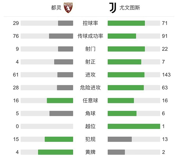 全场比赛结束,尤文图斯2-2战平都灵,积分榜上被亚特兰大反超,排名联赛第4位。