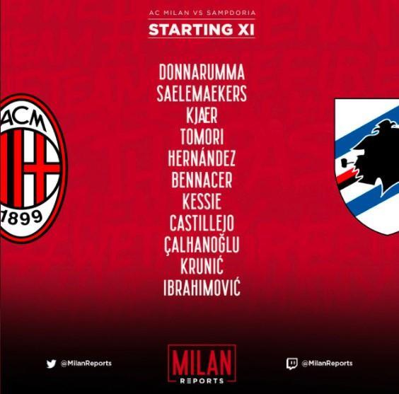 24直播网讯 北京时间4月3日18:30,意甲第29轮,AC米兰坐镇主场迎战桑普多利亚,赛前双方首发出炉。