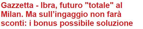 《米体》表示,伊布要求续约合同中年薪仍维持现在的700万欧元,但是相关的出勤奖金可以移除。