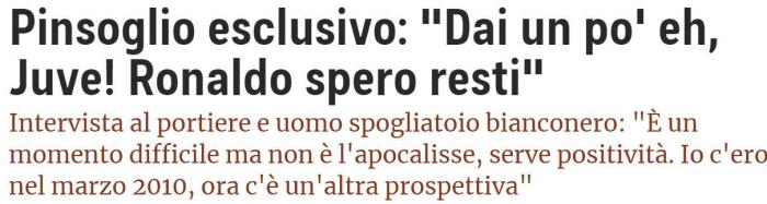 24直播网讯近日,尤文门将平索利奥在接受《都灵体育报》采访时表示,C罗在训练时任意球很准,比赛时可能是缺少运气。