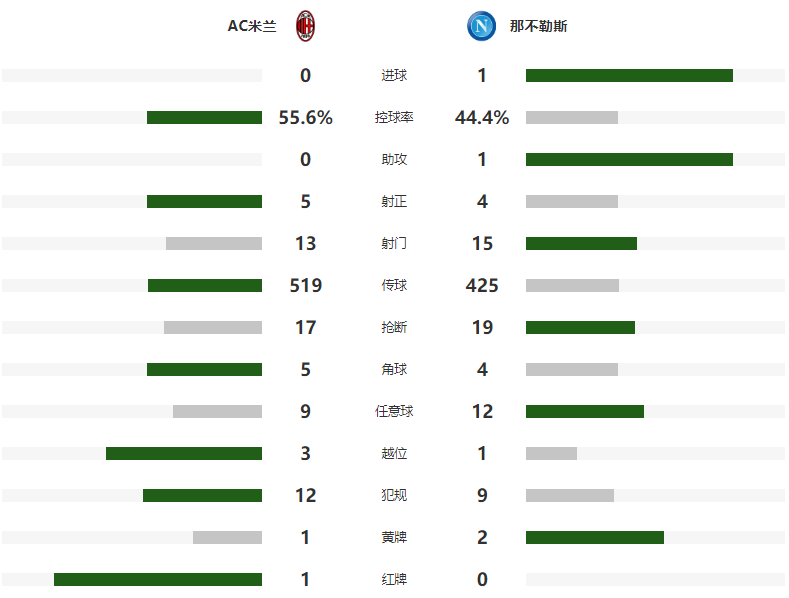 随后全场比赛结束,AC米兰0-1不敌那不勒斯,与榜首国米的差距达到9分。