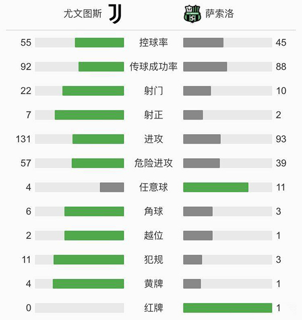 查看:尤文图斯vs萨索洛 全场录像技术统计:
