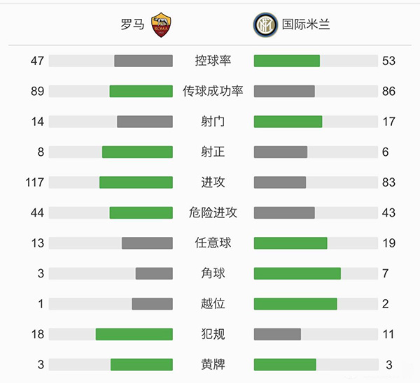 查看:罗马vs国际米兰 全场录像技术统计: