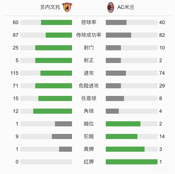 查看:贝内文托vsAC米兰 全场录像技术统计: