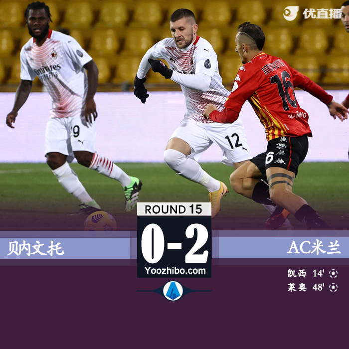 第48分钟,AC米兰再次进球!雷比奇断球后推进到前场中路输送提前量给到禁区左侧,蒙迪珀出击想要拿球,莱奥突然杀出得球,门将正要往回跑,莱奥转身直接右脚兜射吊门破门,贝内文托0-2AC米兰。