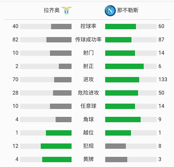 查看:拉齐奥vs那不勒斯 全场录像技术统计: