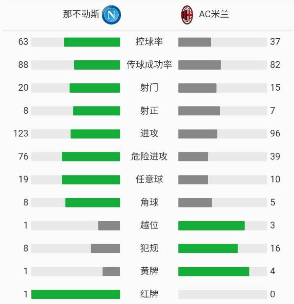 北京时间11月23日3:4524直播网讯,意甲第8轮,那不勒斯迎战AC米兰。上半时特奥助伊布为AC米兰先拔头筹,迪洛伦佐中框。下半时雷比奇助伊布达成双响,默滕斯扳回1球,巴卡约科两黄一红退场,那不勒斯10打11,海于格读秒破门斩个人意甲处子球。最终,AC米兰3-1那不勒斯。本场战罢,AC米兰20分,那不勒斯14分。