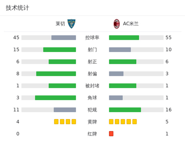 全场比赛结束,AC米兰2-2莱切!AC米兰联赛四轮不胜!