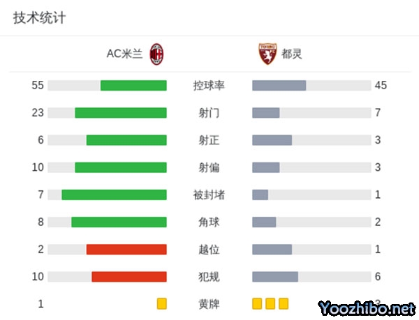 最终,AC米兰2-2战平都灵。