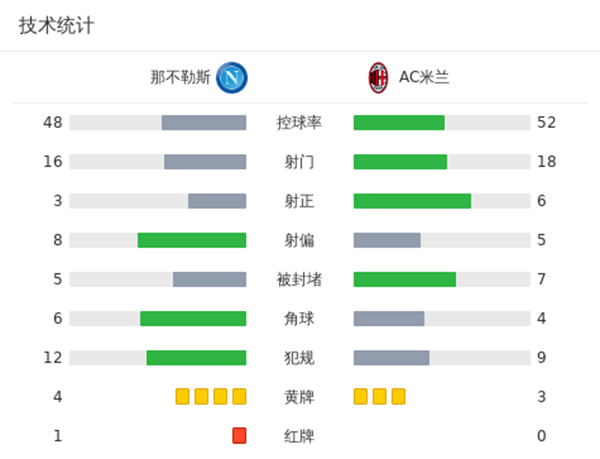 全场比赛结束,最终AC米兰2-2那不勒斯。