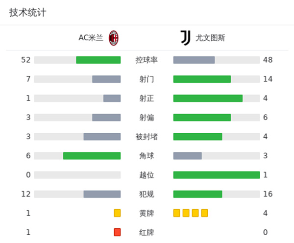 24直播网讯 :北京时间10月23日意甲 联赛 第9轮,AC米兰主场对阵尤文图斯。上半场,吉鲁蝎子摆尾式射门踢疵,吉鲁停球打门被什琴斯尼倒地扑出,佳夫作为最后一名防守球员放倒基恩被直红罚下,基恩近距离抢点打偏;下半场,洛卡特利远射击中克鲁尼奇后变线入网,弗拉霍维奇抽射被米兰特单手扑出,坎比亚索兜射被扑,弗拉霍维奇补射也被米兰特封堵。最终比分0-1。