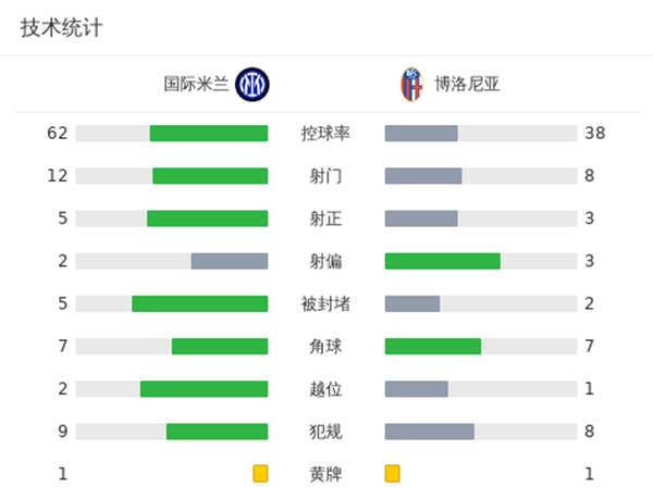 最终全场比赛结束,国米2-2博洛尼亚。