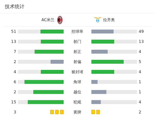 关键事件: 第59分钟,莱奥禁区左侧倒三角回传,普利西奇点球点抽射破门,AC米兰1-0拉齐奥。