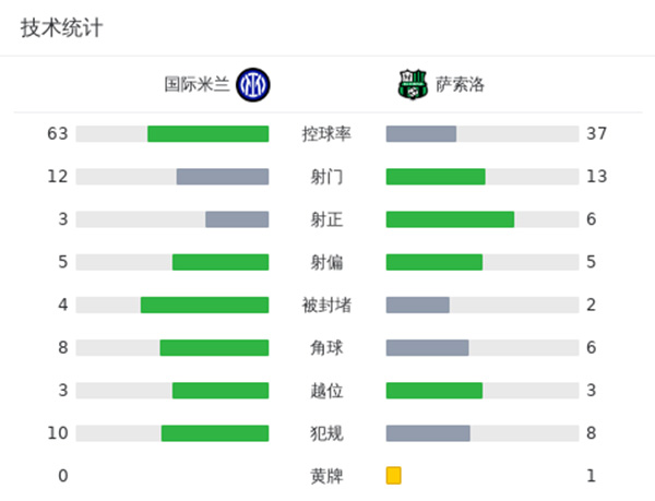 第54分钟,贝拉尔迪送出精准直塞,巴伊拉米高速跟进低射入网,萨索洛1-1扳平比分↓