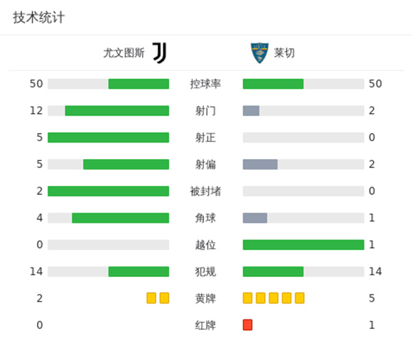 24直播网讯:北京时间9月27日,尤文图斯在意甲第6轮主场对阵莱切。上半场双方机会寥寥,小基耶萨门前近距离打门稍稍偏出。下半场拉比奥头球摆渡助攻米利克门前抢射破门,卡巴终场前因为假摔两黄变一红被罚下。最终尤文主场1-0击败莱切。