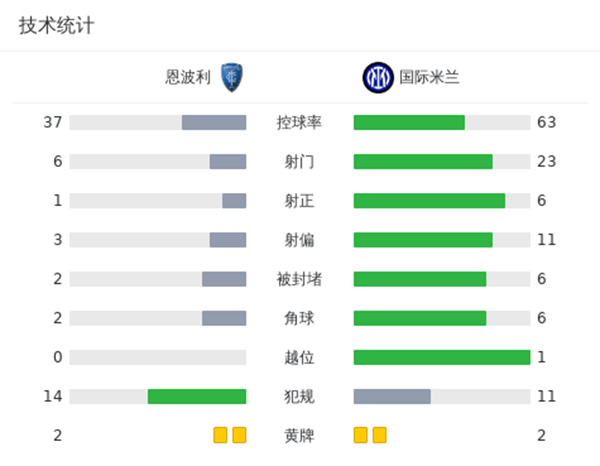 关键事件: 第51分钟,国米左侧角球机会,第一点被解围,外围迪马尔科凌空抽射打出世界波,这球直挂死角,国际米兰1-0恩波利。