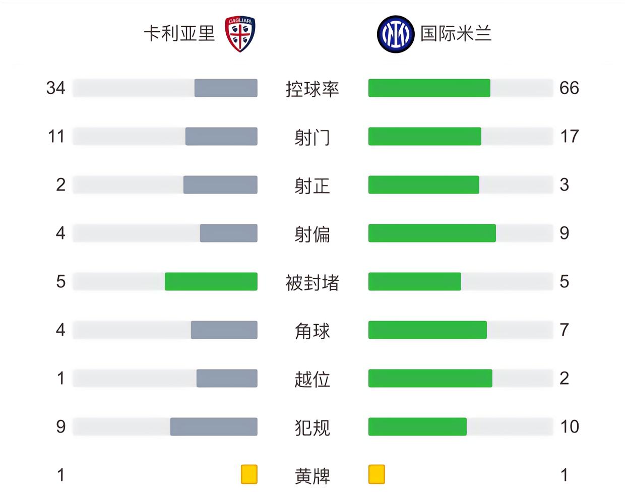 最终国际米兰客场2-0战胜卡利亚里。