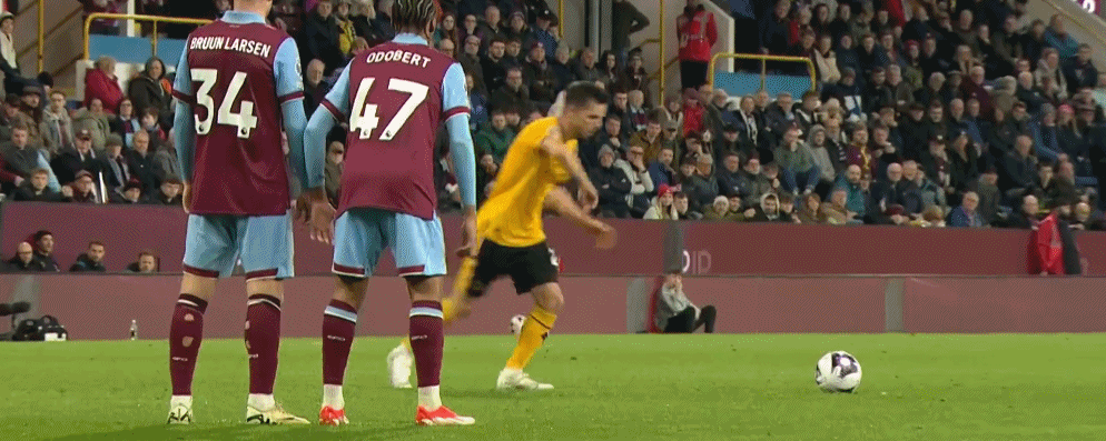 第45+3分钟,萨拉维亚发出前场定位球,艾特-努里头球破门!狼队1-1