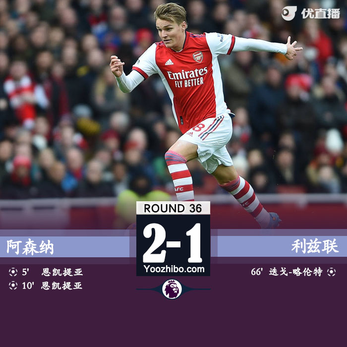 24直播网讯5月8日讯 北京时间5月8日21:00,英超第36轮,阿森纳主场对阵利兹联。上半场,恩凯提亚抓住梅斯利耶失误破门,他随后接马丁内利传中再下一城,艾林剪刀脚飞铲马丁内利染红;下半场,迭戈-略伦特扳回一城,此后双方均未破门。