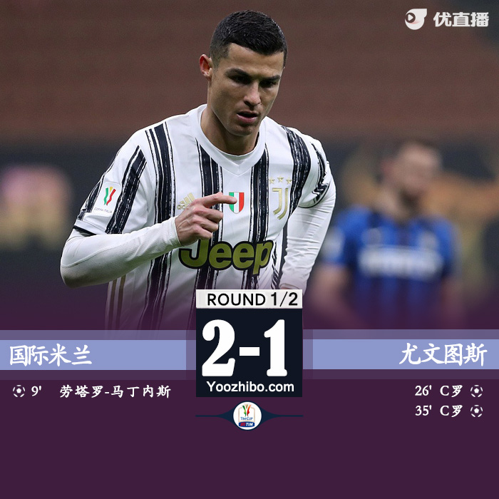 24直播网2月2日讯 北京时间2月3日3:45,意大利杯半决赛首回合,国米迎战尤文。上半时劳塔罗为国米先拔头筹,夸德拉多造点,C罗斩双响。下半时德米拉尔门线救主。最终,国米1-2尤文。
