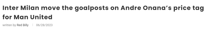 据悉,曼联已经就奥纳纳的转会与国米约定谈判时间,双方可能于周五在伊比萨岛进行会谈,红魔愿报价5000万欧元。这是之前国米对奥纳纳的定价,但据意大利足球记者阿尔弗雷多·佩杜拉(Alfredo Pedulla)披露,正如通常的情况一样,价格已经改变。