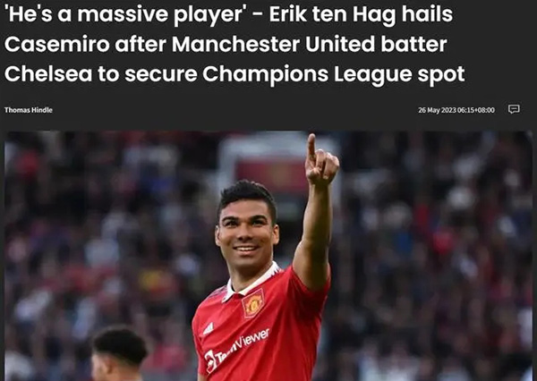 24直播网05月26日凌晨3:00,2022-23赛季英超联赛第32轮补赛,曼联4-1战胜切尔西后,曼联主教练腾哈格对卡塞米罗大加赞赏。