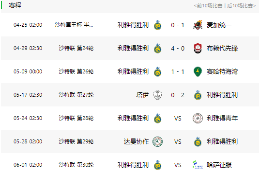 6月1日02:00 第30轮 利雅得胜利VS哈萨征服