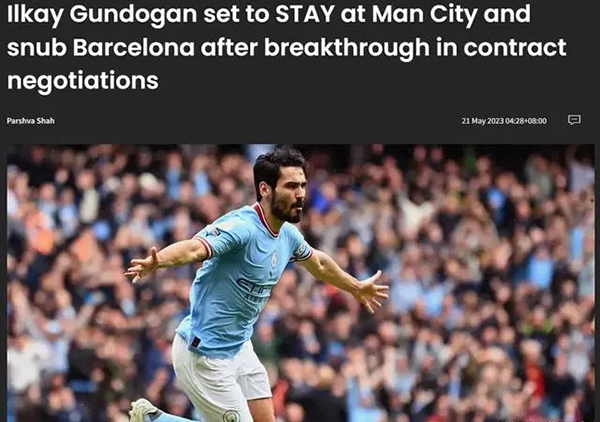 泰晤士报:京多安在合同谈判取得突破后,决定留在曼城放弃巴萨
