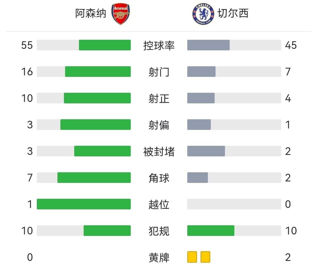 全场比赛结束,阿森纳3-1送切尔西六连败!