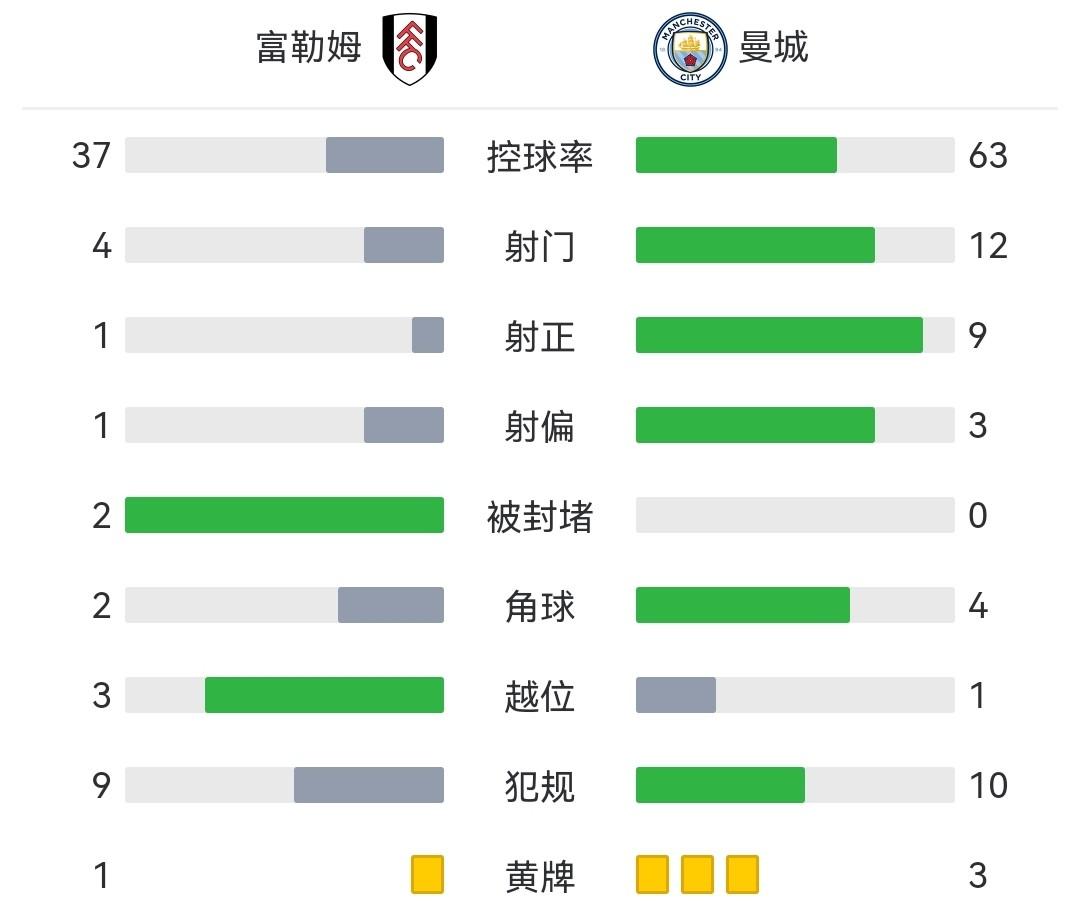 最终,曼城客场2-1击败富勒姆,在少赛一场的情况积分反超阿森纳,升至英超榜首。