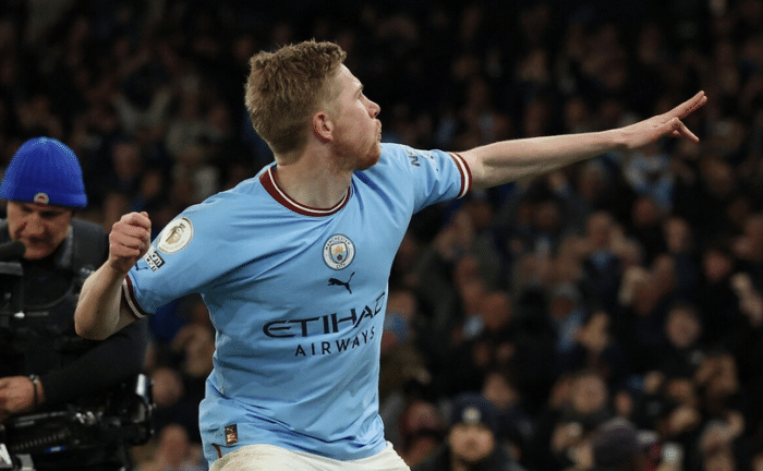 比赛第7分钟,曼城发挥了主场优势,快速进入状态,哈兰德助攻德布劳内破门,曼城1-0领先;比赛第45+1分钟,德布劳内主罚前场定位球,直接助攻斯通斯头球破门,曼城2-0领先;比赛第54分钟,哈兰德在快攻过程中分球,助攻德布劳内完成破门,曼城3-0领先;比赛第86分钟,特罗萨德助攻霍尔丁破门,阿森纳追回一球;比赛第90+5分钟,替补登场的福登助攻哈兰德完成推射破门,曼城4-1拿下比赛。