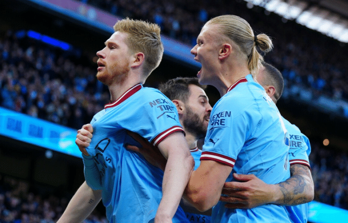 24直播网04月27日讯 英超联赛第33轮,曼城主场对阵领头羊阿森纳,经过90分钟的角逐,曼城展现了冠军相,拿出了卫冕冠军应有的统治力,直接吊打阿森纳,以4-1大胜收场。22岁的天才巨星哈兰德继续暴走,打进1球的同时完成2次助攻,独造3球;德布劳内打进2球助攻1次,后卫斯通斯也打进1球。为阿森纳打进挽回颜面的一球的是后卫霍尔丁。