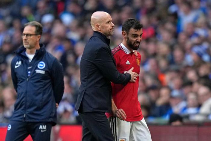 24直播网讯04月24日曼联队长布鲁诺·费尔南德斯在足总杯半决赛对布莱顿的比赛中没能坚持到最后,他上半场发挥出色,多次威胁到海鸥军团的球门。然而,他不幸遭遇脚踝受伤,让其下半场的发挥下滑,甚至没能像平时那样大范围跑动。加时赛中,B费更是被提前换下,这是不寻常的做法,因为比赛很可能进入点球大战,葡萄牙中场是球队头号点球手。